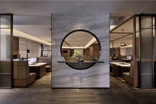 中原万达店作为巴奴4.0版新店,与大卫城店一样,是目前巴奴推出的商场店中最高规格版。在整个火锅店装修设计中,在空间中大量运用片状钢板,模拟激流的运动形态;加上空间中的石柱,整体造型一动一静,张力十足,暗合了巴奴在中国餐饮界“团结同心,逆流而上”的“挑战者”形象。