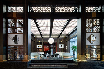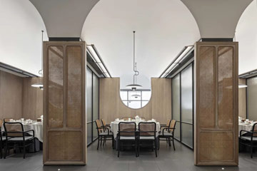 简奢而自然,给客人带来全新的美食体验。时空赋予的印记和历史文化价值,让她有着与众不同的坦然气质。园林建筑里铺开先锋设计的张力,与山水诗画同频共情....大厅设计方中带圆,辅以建筑的镂空设计,以精工手法传递着细腻的工匠艺术精神。 圆形接待休息处更是传达了东方礼仪之美。整个空间序列严谨,层层缔合,明暗相承,无不透露着建筑中......