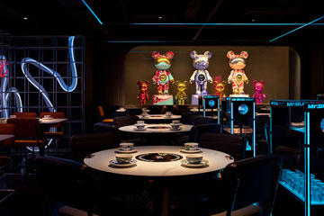 • 时尚潮酷赛博朋克风牛蛙火锅店装修设计方案