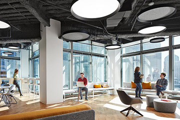 Siemens西门子(总部位于柏林和慕尼黑)凭借电气化、自动化和数字化领域的创新,在发电和输配电、基础设施、工业自动化、驱动和软件等领域为客户提供解决方案。专业办公室装修设计团队精彩呈现其拥有震撼城市景观视野的芝加哥工作场所。 设计团队通过参照芝加哥的地理环境和地标来规划室内空间。比如,以芝加哥河(Chicago Ri......