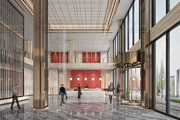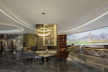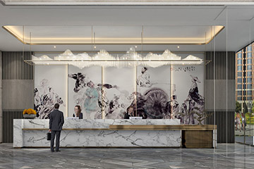 大厅与前台以实现空间的功能性为前提,为住客快速办理入住创造条件。建筑前台弧形背景墙以乌海人文景观为素材,用城市篇幅描绘,为城市增添了一种城市文化形态感。...